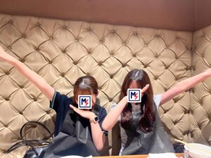 店舗名にちなんだポーズを披露してくれたNさん(左)とTSさん(右)